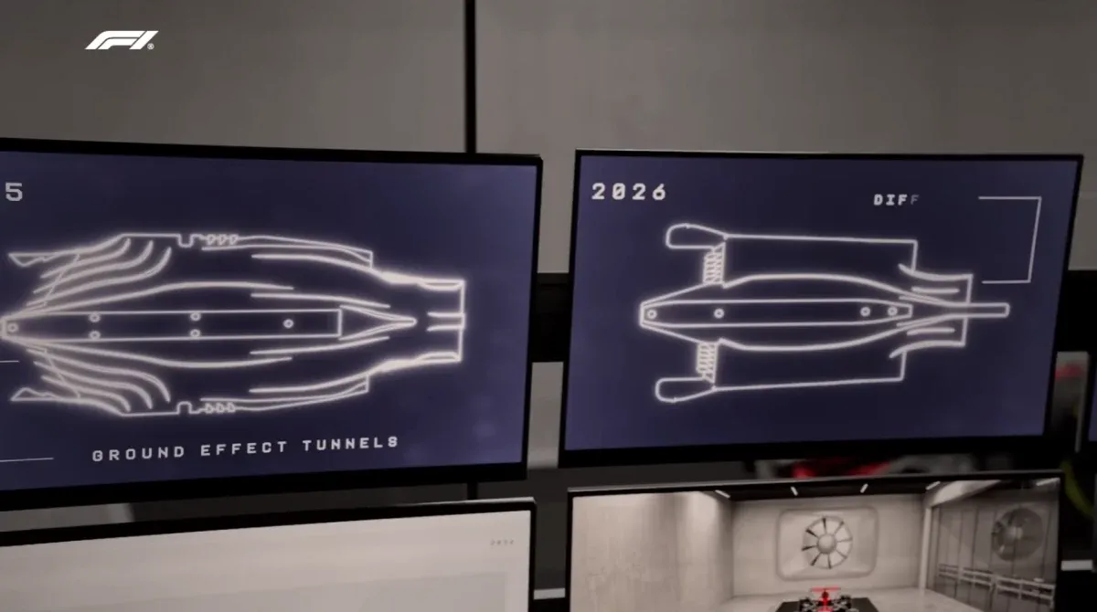 พื้นรถ F1 ของปี 2025 (ด้านซ้าย) เมื่อเทียบกับพื้นรถ F1 ของกฎปี 2026 (ด้านขวา)
